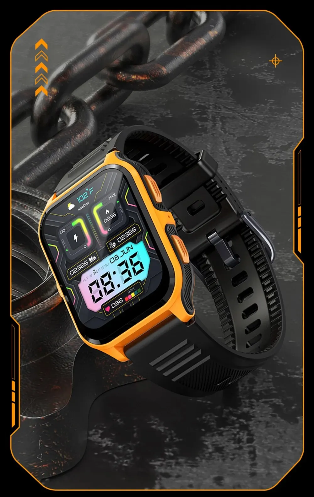 • Professional Waterproof :This smartwatch is designed to withstand harsh outdoor conditions with its professional waterproof grade.