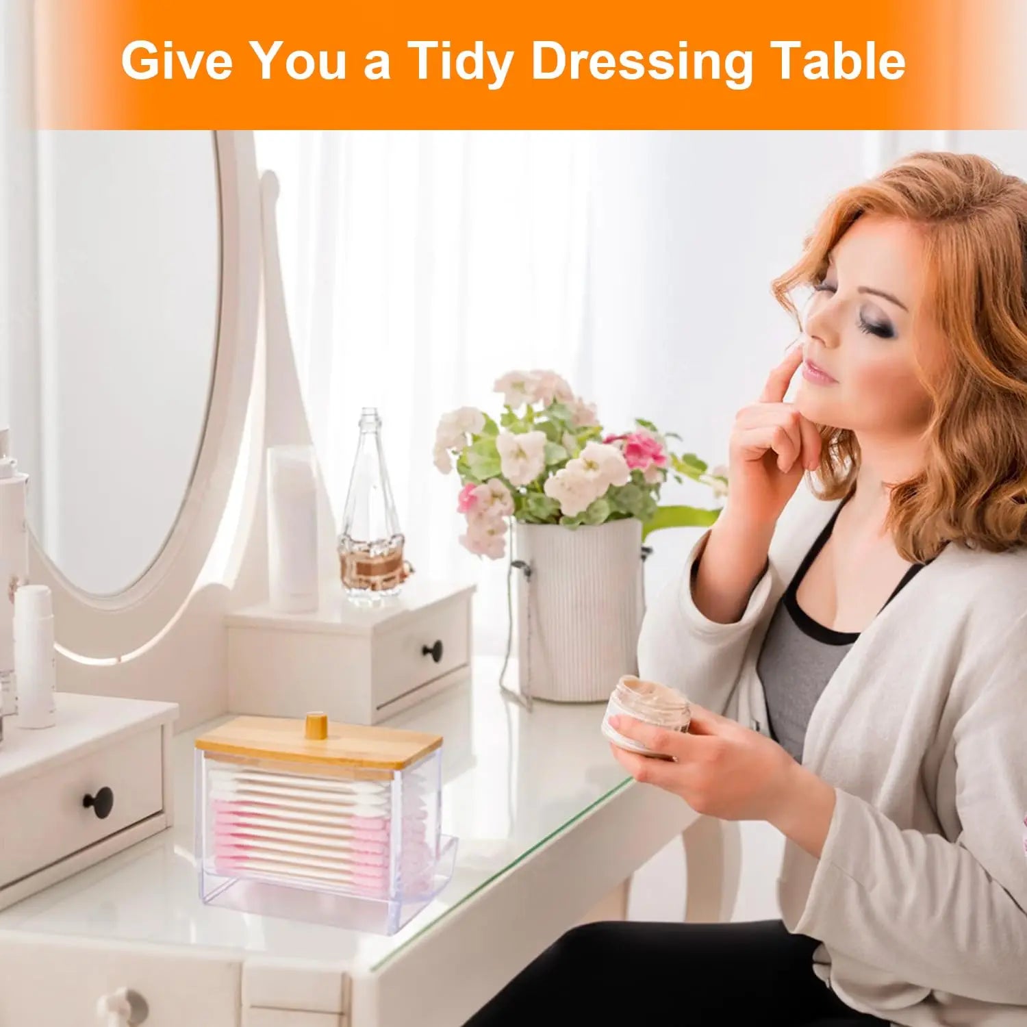 1Pcs Cotton Swab Holder, Cotton Swab Dispenser with Bamboo Lids,Bamboo Bathroom Storage Jars Storage Containers Clear Plastic