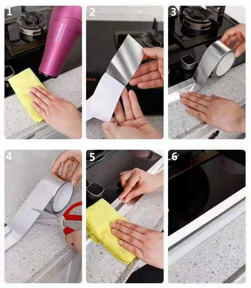 Kitchen Sticker Tape Stove Sink Sealing Tape Oilproof Waterproof High Temperature Resistance Aluminum Foil Tape Adhesive