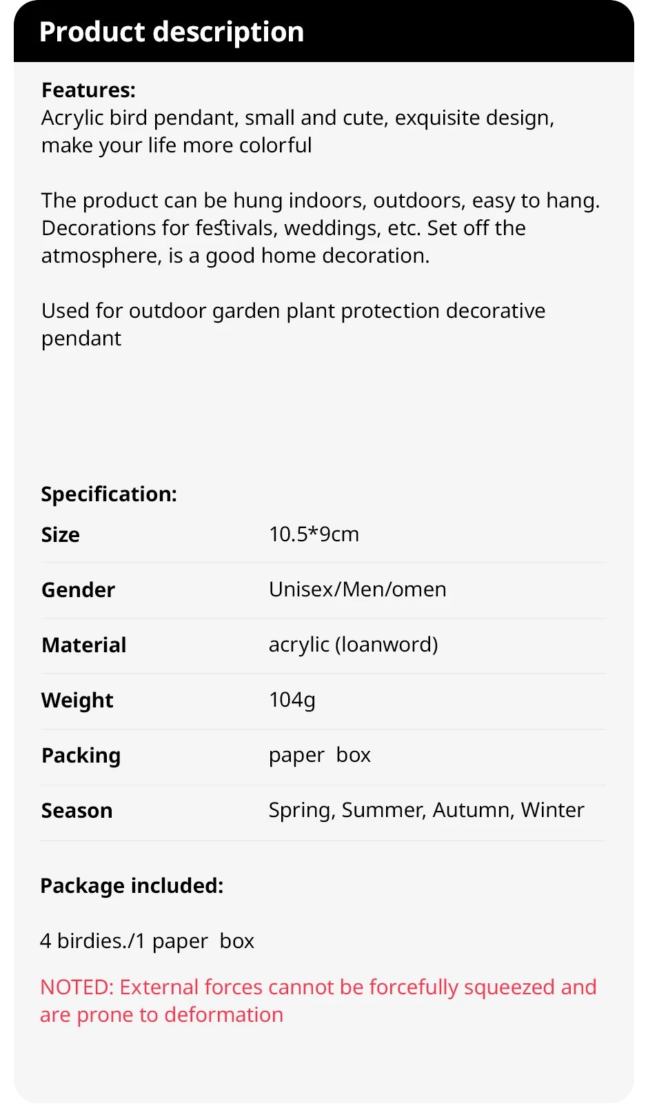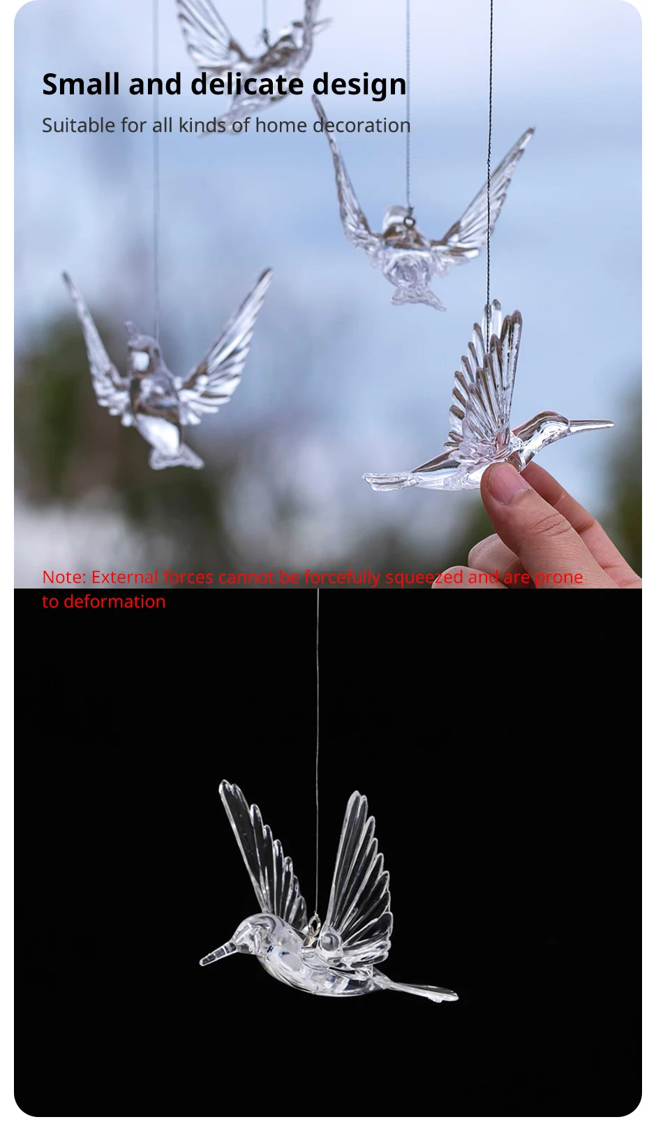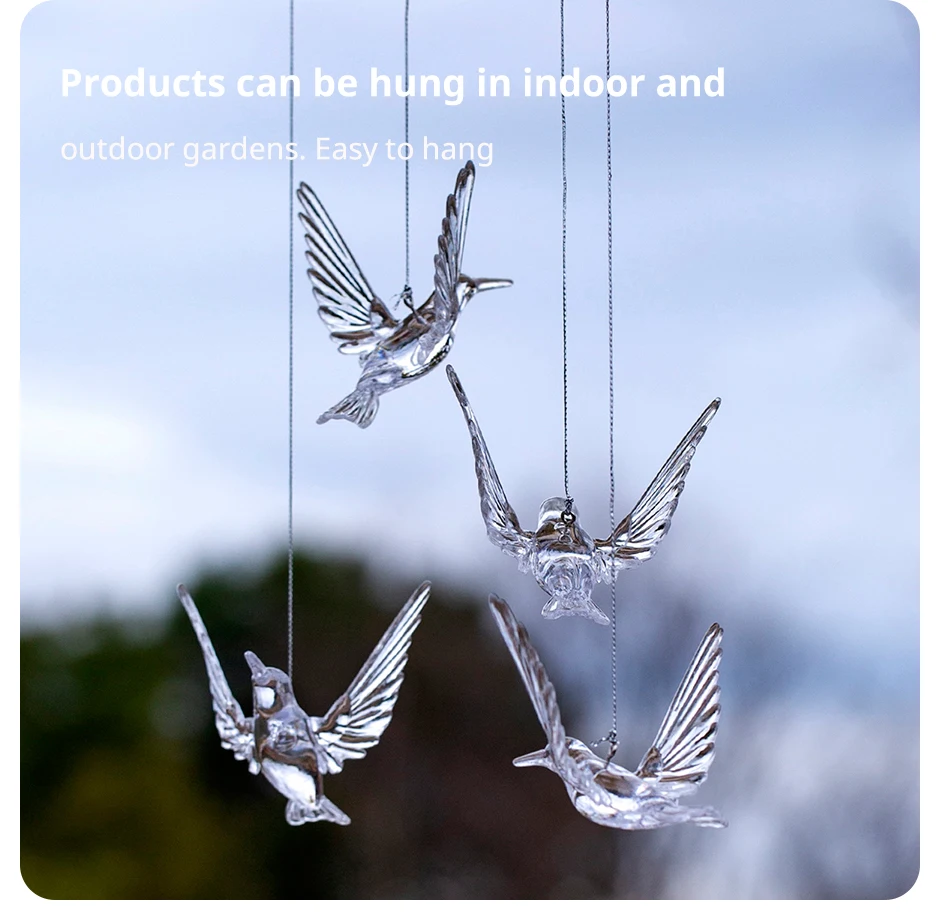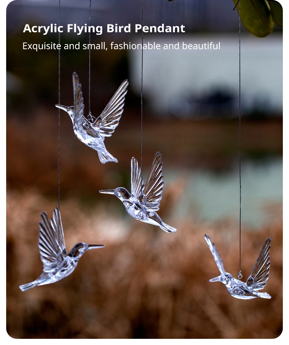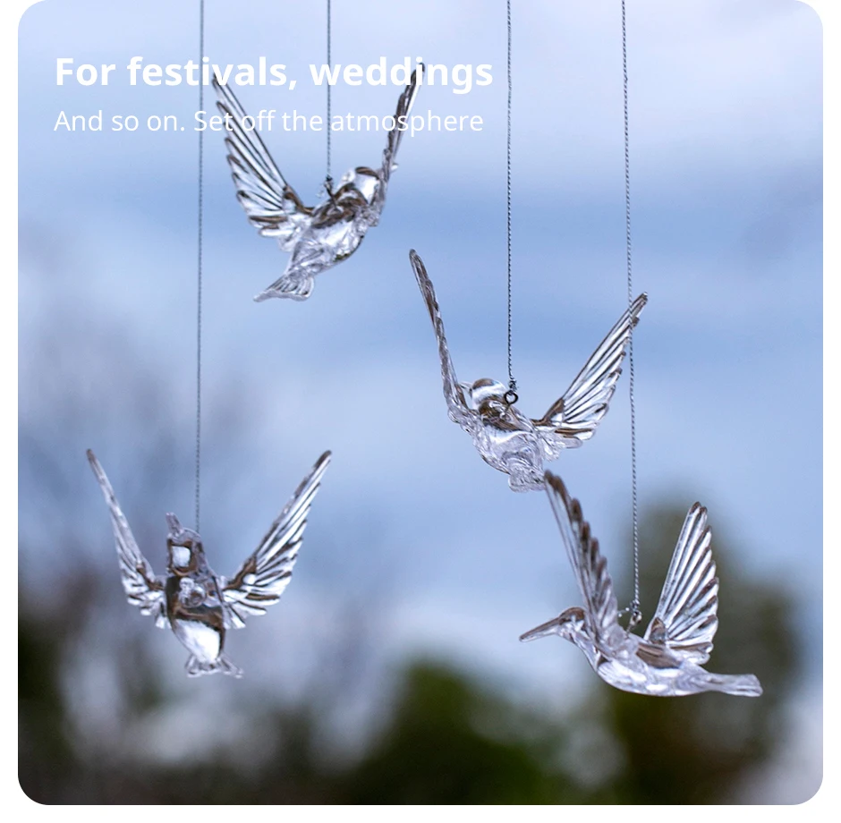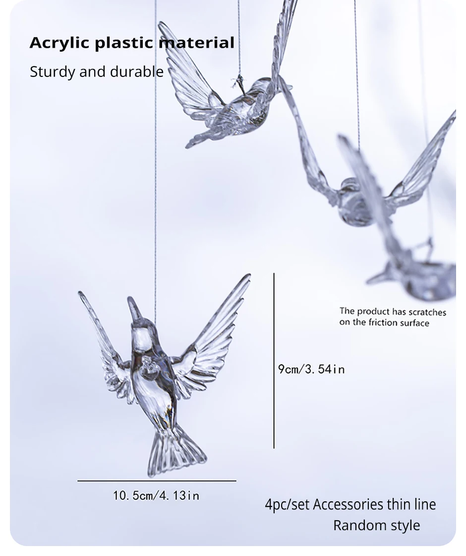 Set of 4 Random Style Clear Acrylic Bird Pendants for HomeWindowsOutdoorGarden Holiday and Wedding Decorations (Ribbon Lncluded)